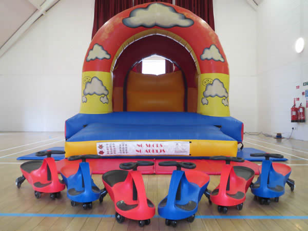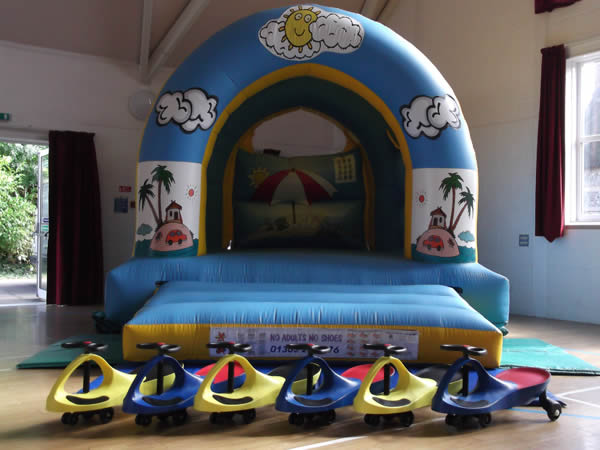 We can set-up our bouncy castles in about 20 minutes and the same for collecting, but allowing at least an hour either side of your party is much more practical. Our 12' x 14' Bouncers are suitable for over 95% of village halls that we have come across. Our larger castles are suitable for many of them too but it's worth checking when booking your hall for the size and space and pay particular attention to the ceiling height. We have information on many local halls for hire and which of our castles are suitable for them, we are very happy to advise customers when booking for their indoor parties.